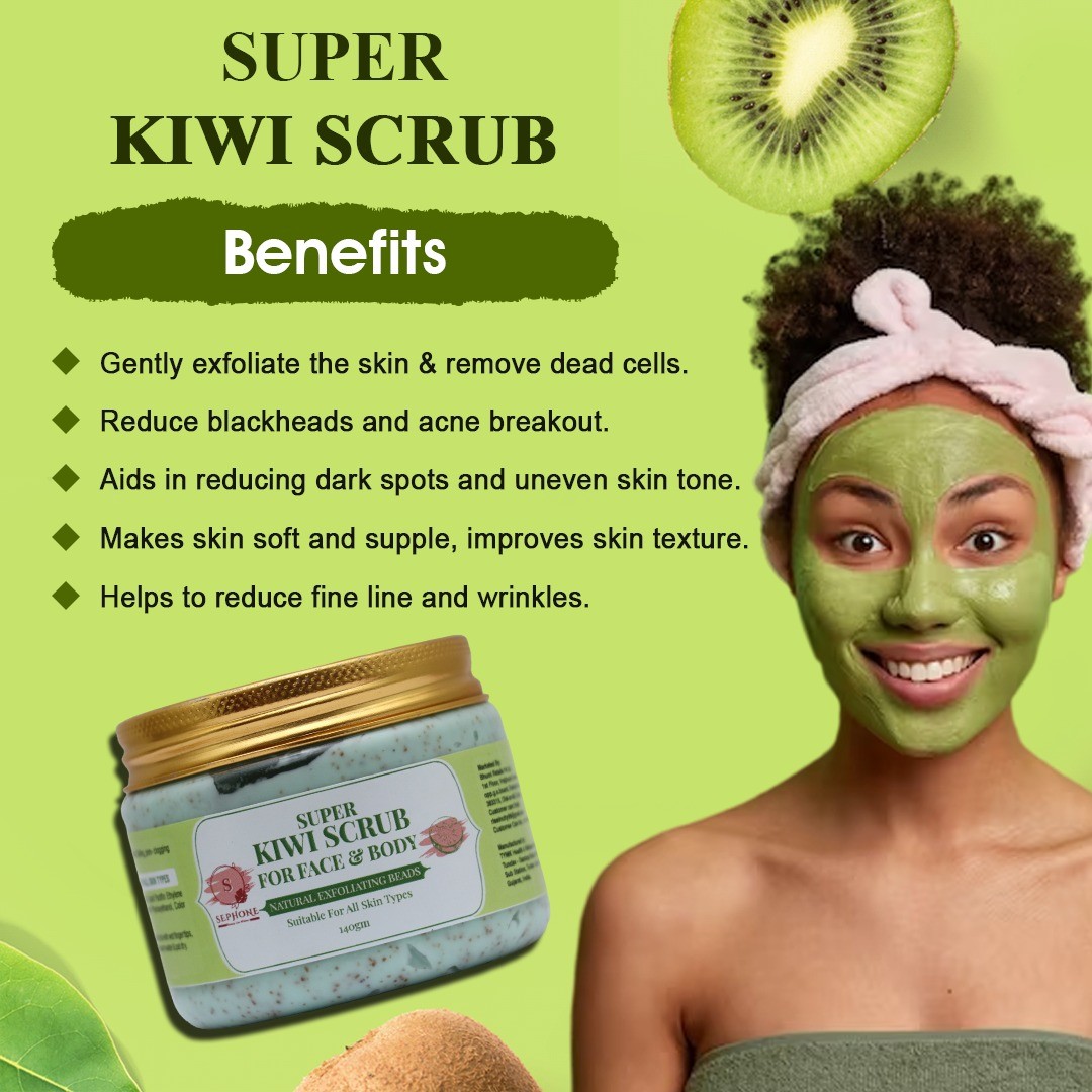 refreshing and invigorating benefits of our Kiwi Face and Body Scrub today.